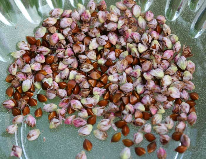 Schon Mitte Juni sind die Samen reif. Sie sehen aus wie Miniatur-Bucheckern und schmecken fast ebenso nussig. Streuen Sie sie einfach über Ihren Salat!