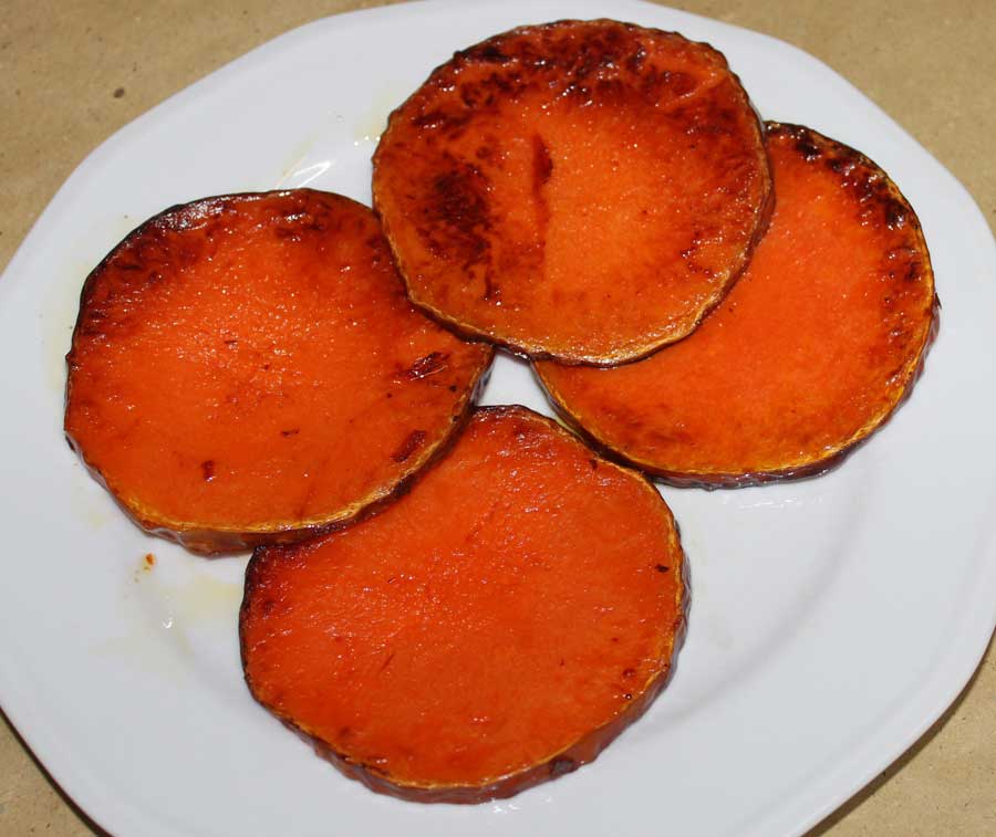 ![]() | Kürbistaler für den schnellen Hunger: Einfach ein paar Scheiben beidseitig in Öl goldbraun braten und salzen - lecker! |